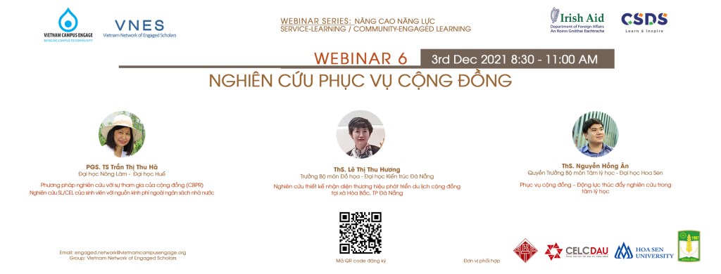Following that, MSc. Le Thi Thu Huong (Danang Architecture University) and MSc. Nguyen Hong An (Hoa Sen University) presented case studies on topics such as “community-based tourism branding” and “researching psychological health”. The talk assisted researchers in a better understanding of CBR, bringing in fresh ideas for developing effective SL/CEL studies.