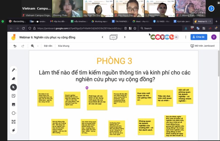 Webinar 6 attracted more than 60 participants, including lecturers and academics from 25 universities, colleges, and civil society groups, demonstrating that SL/CEL research is a hot topic. Many educators shared their experiences with research initiatives, government programs, NGOs, commercial organizations, and even municipal governments.