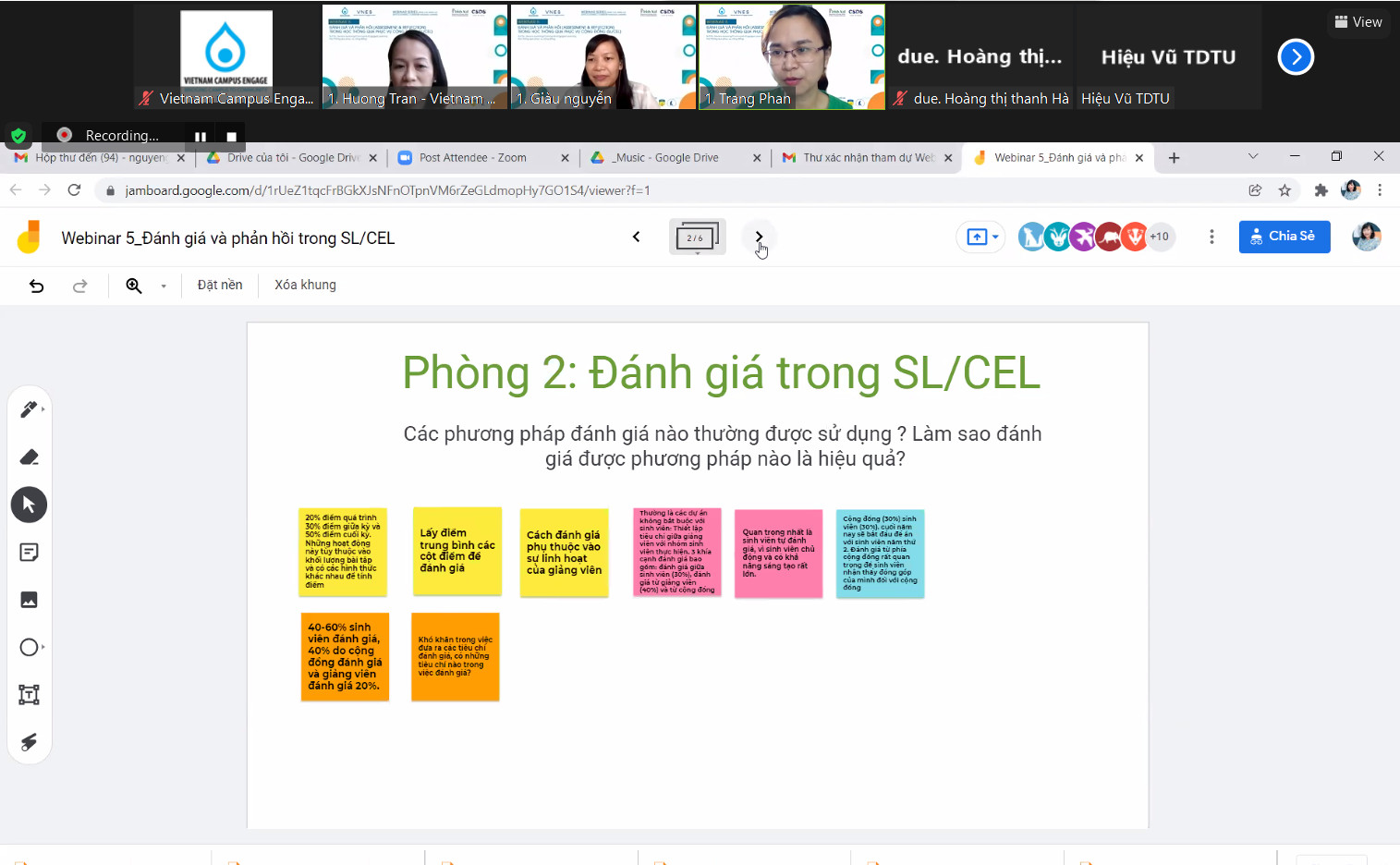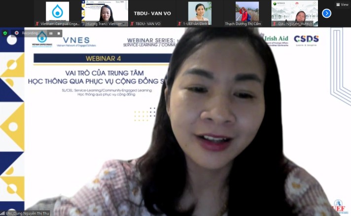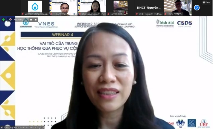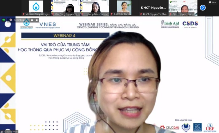 Webinar 6 attracted more than 60 participants, including lecturers and academics from 25 universities, colleges, and civil society groups, demonstrating that SL/CEL research is a hot topic. Many educators shared their experiences with research initiatives, government programs, NGOs, commercial organizations, and even municipal governments. Assoc. Tran Thi Thu Ha (University of Agriculture and Forestry-Hue University) helped the participating scholars introduce the “development process-principles and methods of the Approach of Community-Based Participatory Research (CBR),” “Research ethics” and “implementing CBR for students with funding from outside the budget” through two presentations in the webinar. “The faculty and students’ passion, devotion, and excitement not only bring education closer to the community and have a more direct approach, but they also assist instructors and students in overcoming financial hurdles.” Following that, MSc. Le Thi Thu Huong (Danang Architecture University) and MSc. Nguyen Hong An (Hoa Sen University) presented case studies on topics such as “community-based tourism branding” and “researching psychological health”. The talk assisted researchers in a better understanding of CBR, bringing in fresh ideas for developing effective SL/CEL studies.